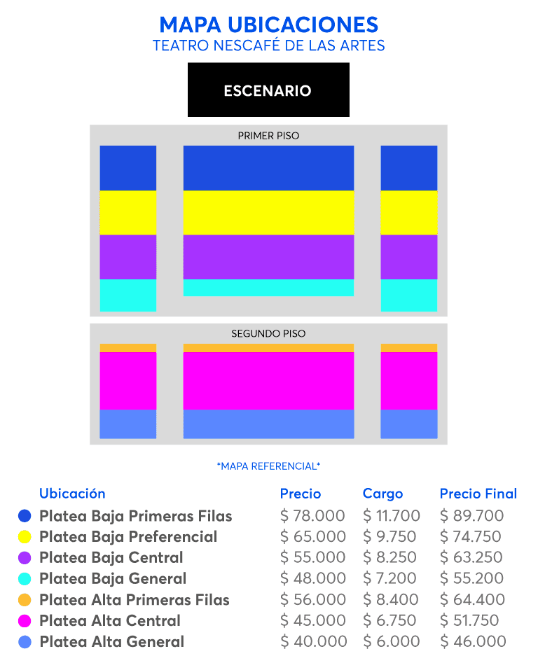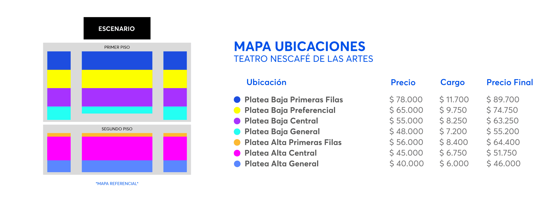 - Cualquier consulta sobre este evento, comuníquese por vía escrita con la Atención a la Comunidad del Teatro NESCAFÉ de las Artes a través del WhatsApp (+56 9) 9188 3447, de lunes a viernes de 11:00 a 19:00 Hrs. No se atienden llamados telefónicos.