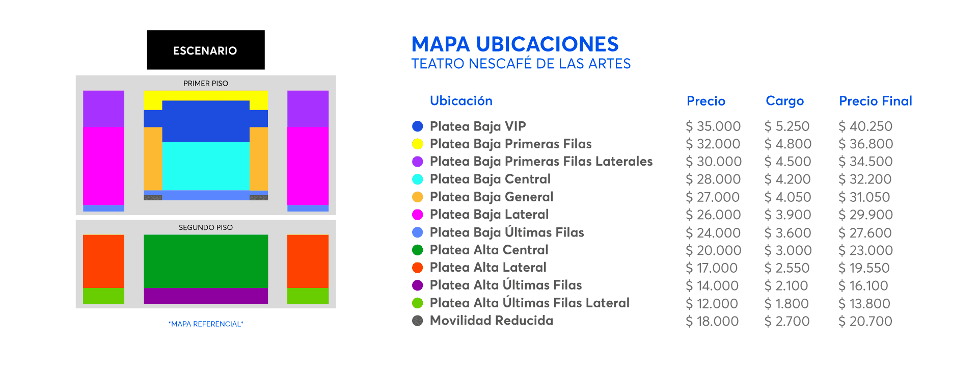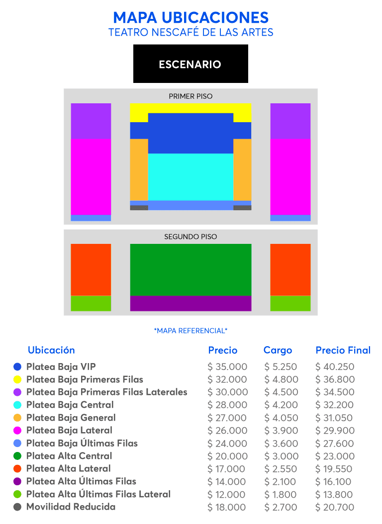- Cualquier consulta sobre este evento, comuníquese por vía escrita con la Atención a la Comunidad del Teatro NESCAFÉ de las Artes a través del WhatsApp (+56 9) 9188 3447, de lunes a viernes de 11:00 a 19:00 Hrs. No se atienden llamados telefónicos.