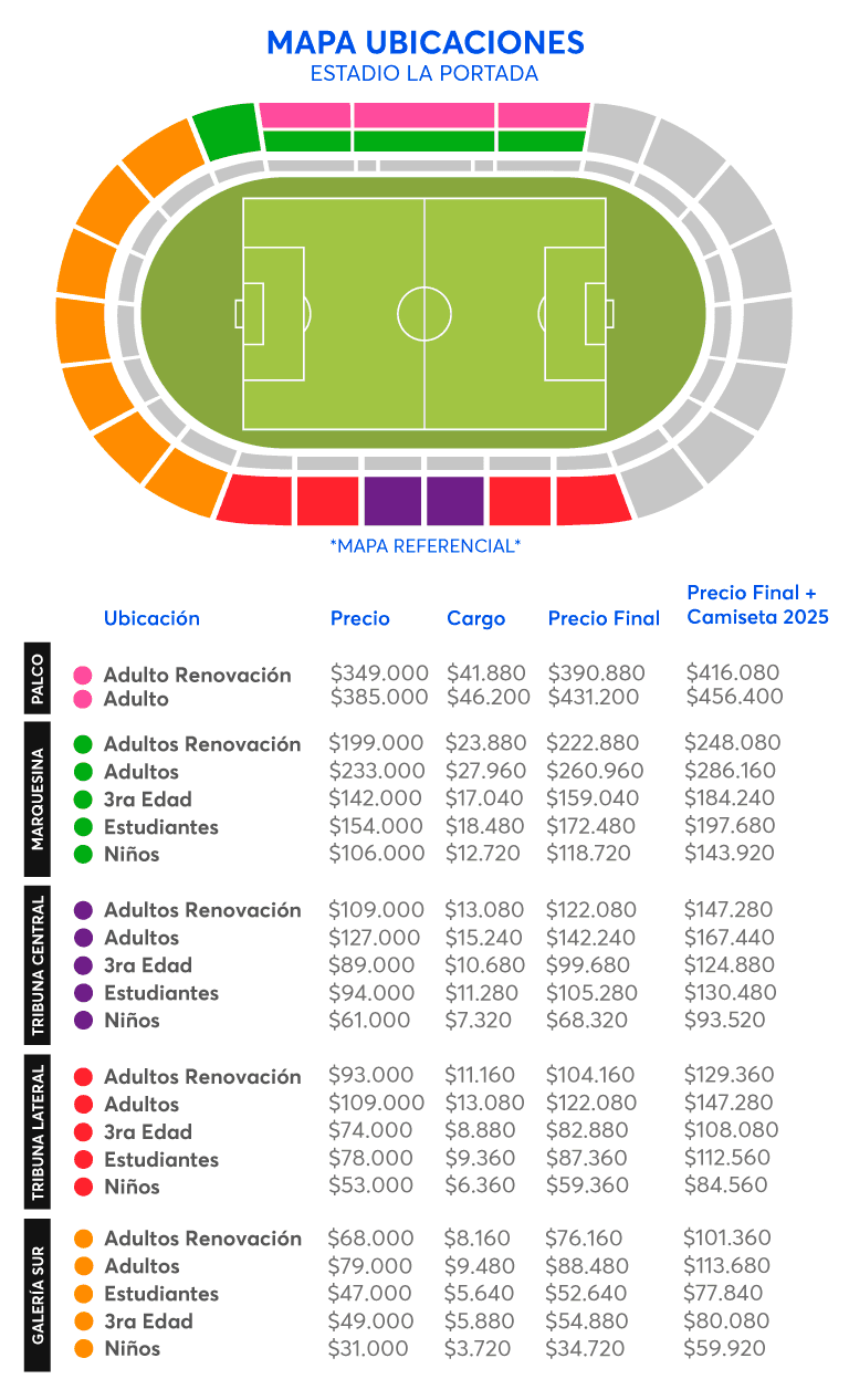 - El Abono no aplica para partidos internacionales.