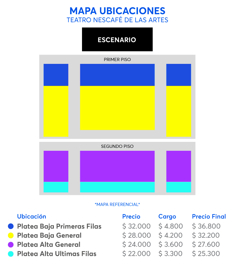 - Cualquier consulta sobre este evento, comuníquese por vía escrita con la Atención a la Comunidad del Teatro NESCAFÉ de las Artes a través del WhatsApp (+56 9) 9188 3447, de lunes a viernes de 11:00 a 19:00 Hrs. No se atienden llamados telefónicos.
