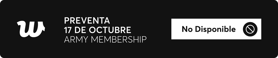 - La PREVENTA ARMY MEMBERSHIP comenzará el Martes 7 de Abril, desde las 13:00 hrs. en adelante hasta el Miercoles 8 de Abril a las 22:00 hrs. o hasta agotar stock.