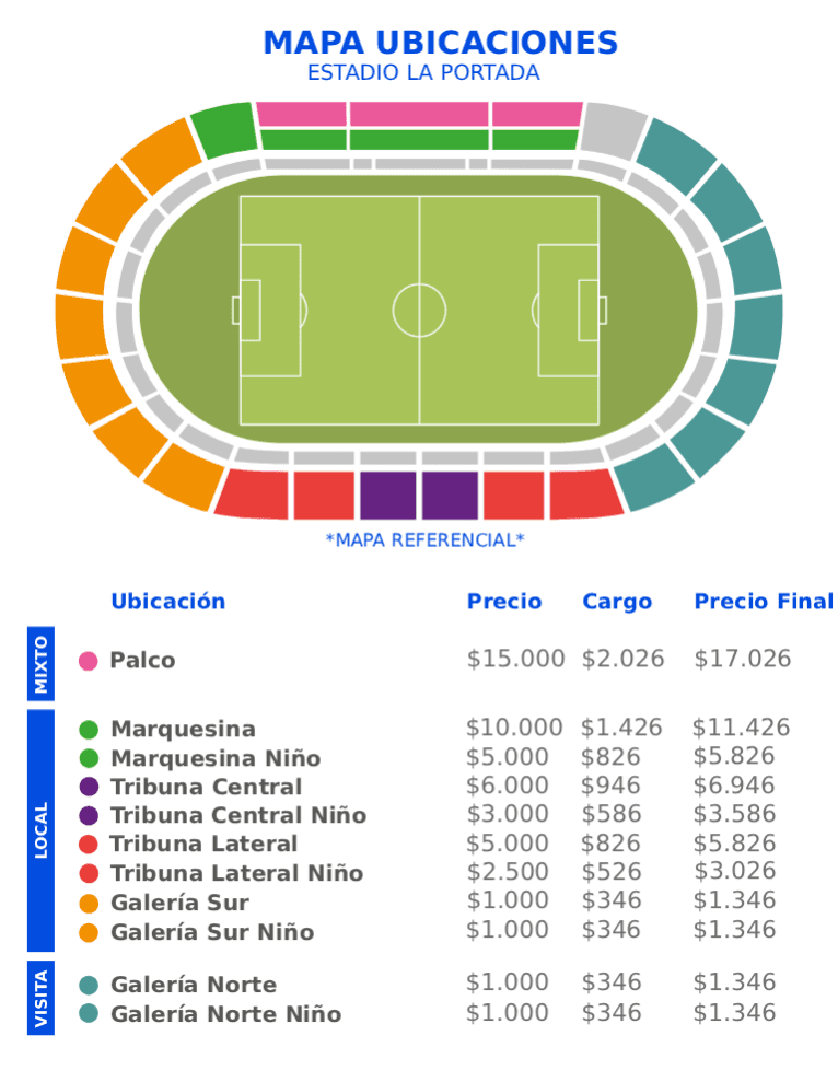 - Se sugiere no asistir al estadio con bolsos o mochilas para no demorar la entrada de personas debido a que existirán horarios e ingresos limitados.