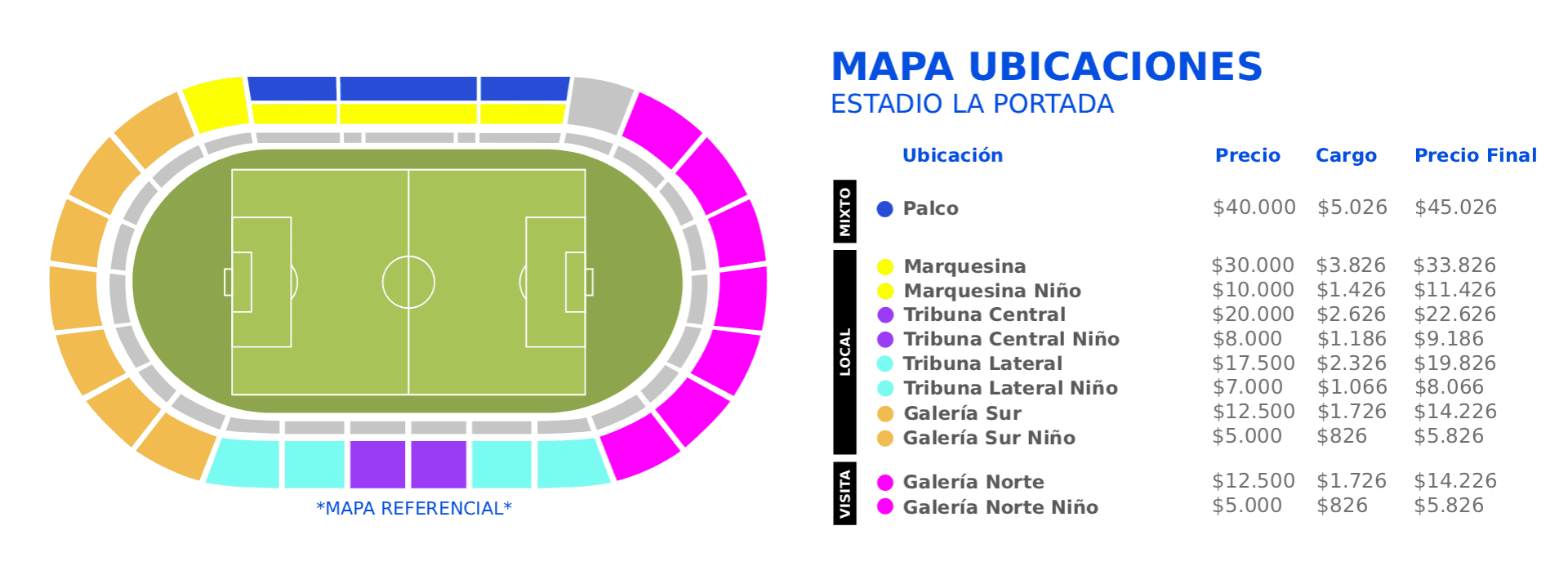 - Se sugiere no asistir al estadio con bolsos o mochilas para no demorar la entrada de personas debido a que existirán horarios e ingresos limitados.