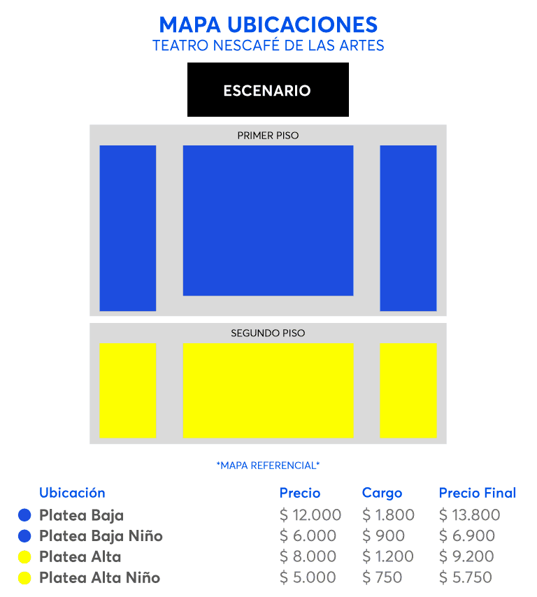 - Cualquier consulta sobre este evento, comuníquese por vía escrita con la Atención a la Comunidad del Teatro NESCAFÉ de las Artes a través del WhatsApp (+56 9) 9188 3447, de lunes a viernes de 11:00 a 19:00 Hrs. No se atienden llamados telefónicos.