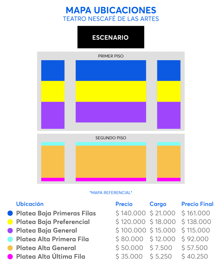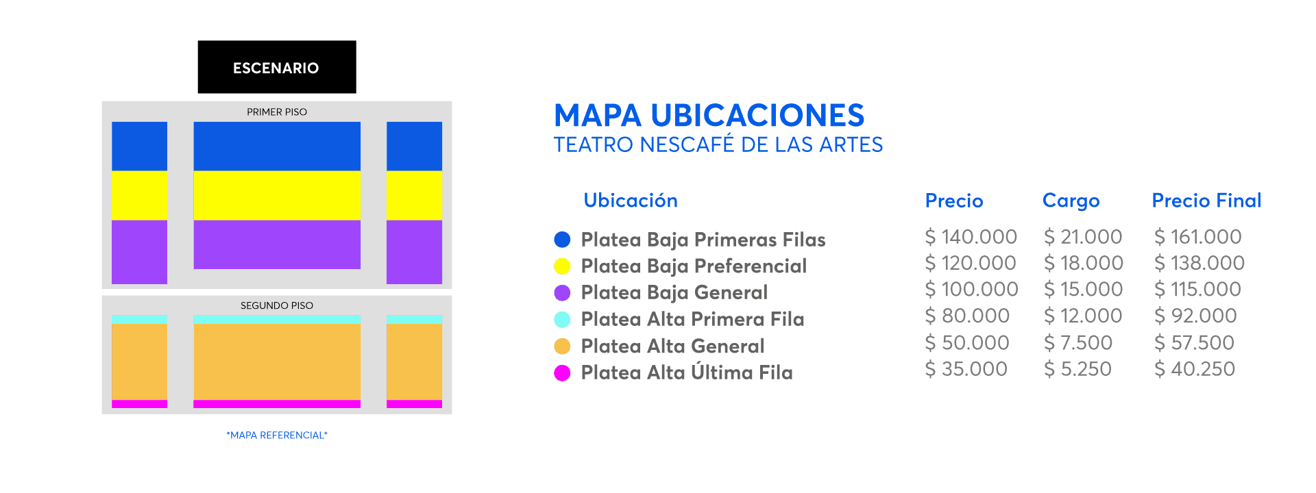 - Cualquier consulta sobre este evento, comuníquese por vía escrita con la Atención a la Comunidad del Teatro NESCAFÉ de las Artes a través del WhatsApp (+56 9) 9188 3447, de lunes a viernes de 11:00 a 19:00 Hrs. No se atienden llamados telefónicos.