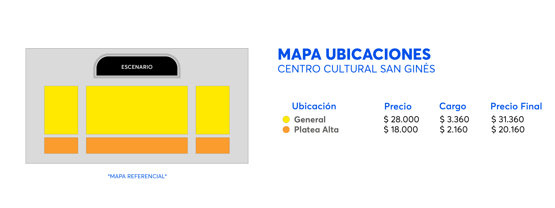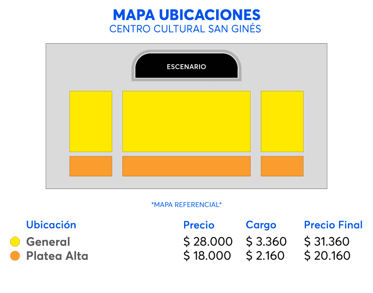 - El Teatro y el Centro Cultural San Ginés abren sus puertas 1 hora antes de la hora de función para recibir al público. El acceso a la sala se habilita 15 minutos antes del inicio del espectáculo.
