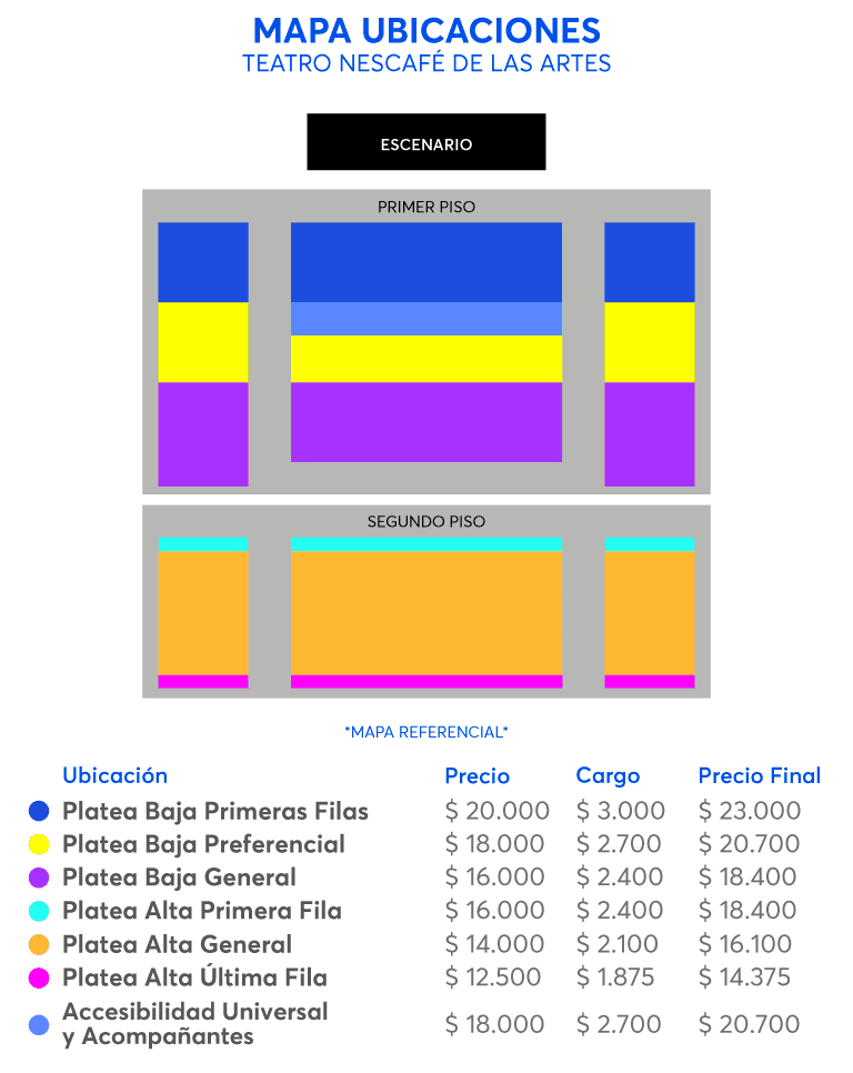 Cualquier consulta sobre este evento, comuníquese por vía escrita con la Atención a la Comunidad del Teatro NESCAFÉ de las Artes a través del WhatsApp (+56 9) 9188 3447, de lunes a viernes de 11:00 a 19:00 Hrs. No se atienden llamados telefónicos.