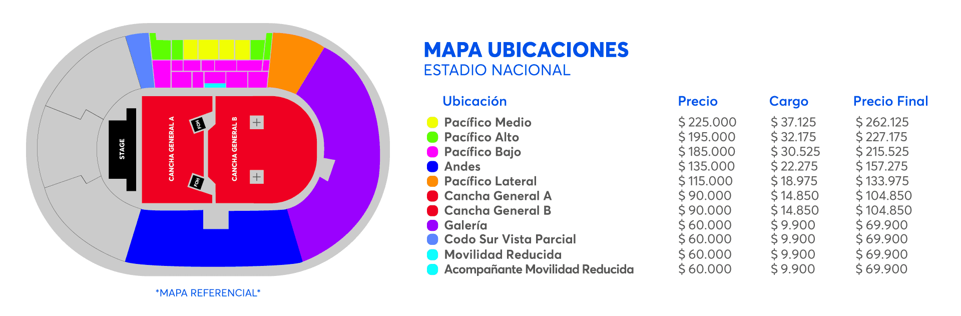 - Los sectores Cancha General A y Cancha General B son ubicaciones separadas, es decir, al momento de seleccionar tu ubicación, ese será tu sector. No existe conexión entre Cancha General A y Cancha General B.