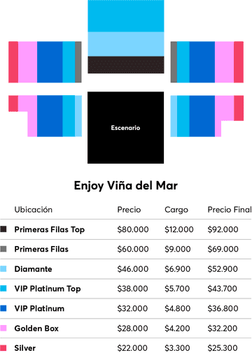 Venta de entradas online y en boletería Casino Enjoy Viña del Mar (Vi., Sa. y Do. 18 a 23hrs.)