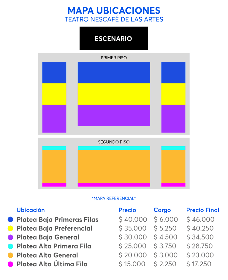 - Cualquier consulta sobre este evento, comuníquese por vía escrita con la Atención a la Comunidad del Teatro NESCAFÉ de las Artes a través del WhatsApp (+56 9) 9188 3447, de lunes a viernes de 11:00 a 19:00 Hrs. No se atienden llamados telefónicos.