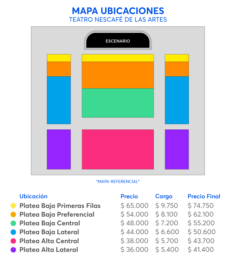 - Cualquier consulta sobre este evento, comuníquese por vía escrita con la Atención a la Comunidad del Teatro NESCAFÉ de las Artes a través del WhatsApp (+56 9) 9188 3447, de lunes a viernes de 11:00 a 19:00 Hrs. No se atienden llamados telefónicos.