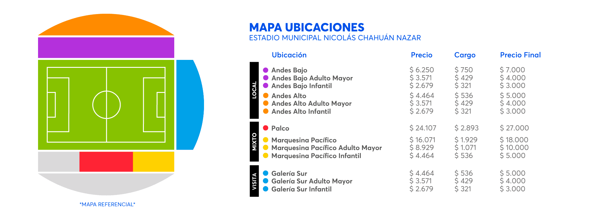 Los accesos para el día del partidos serán de la siguiente manera: (sujeto a cambio por la autoridad)